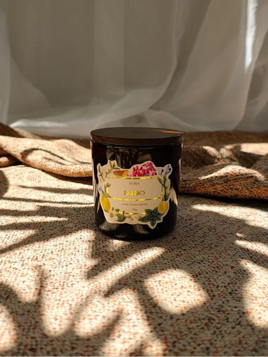 Composição: cera de coco e palma, fragrância premium e pavio de algodão
