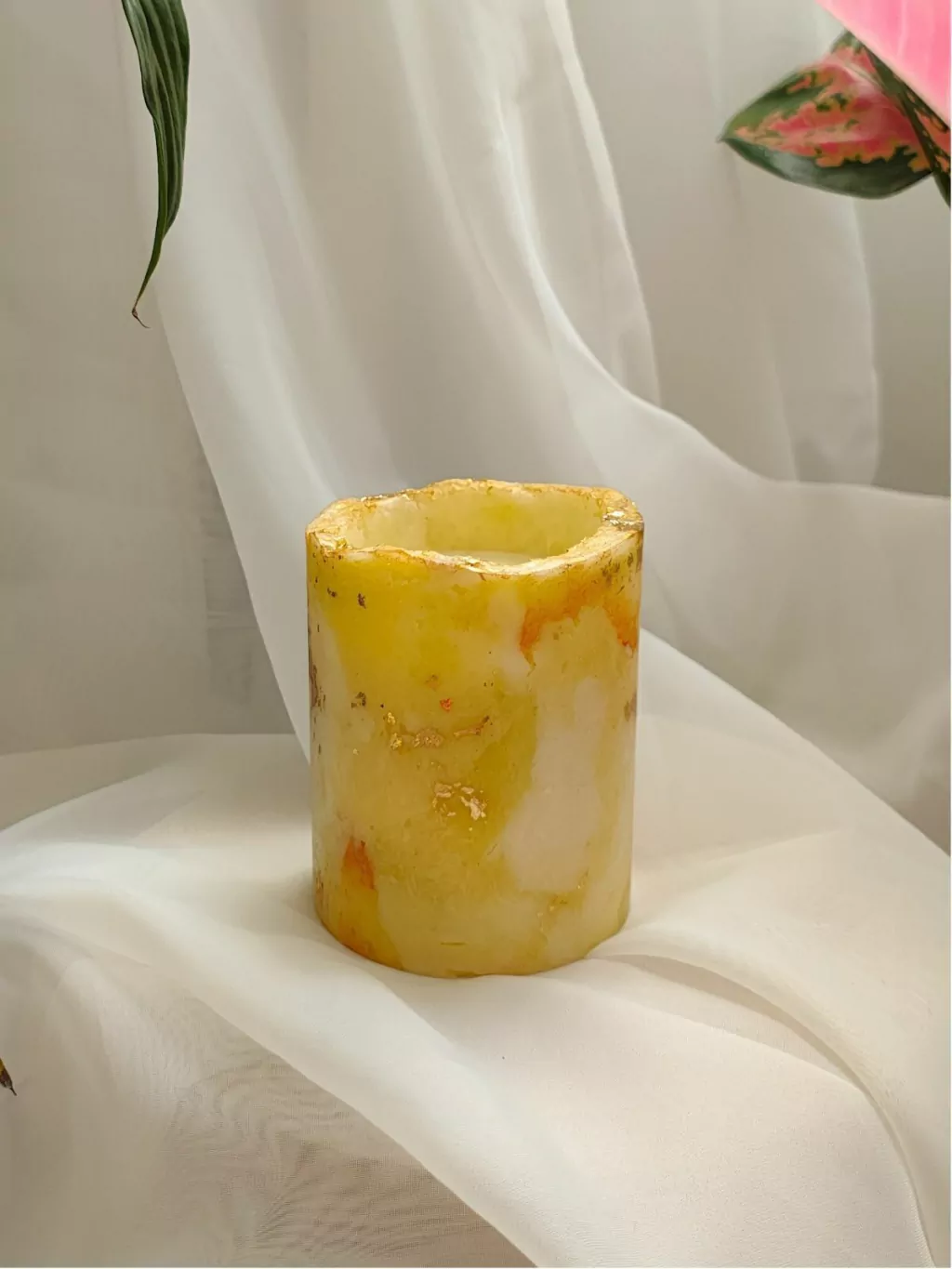 Feitas à mão, uma a uma, em um processo lento e cheio de intenção. O exterior, com acabamento que imita o mármore, carrega texturas e nuances que jamais se repetem, cada vela é uma pequena obra de arte.